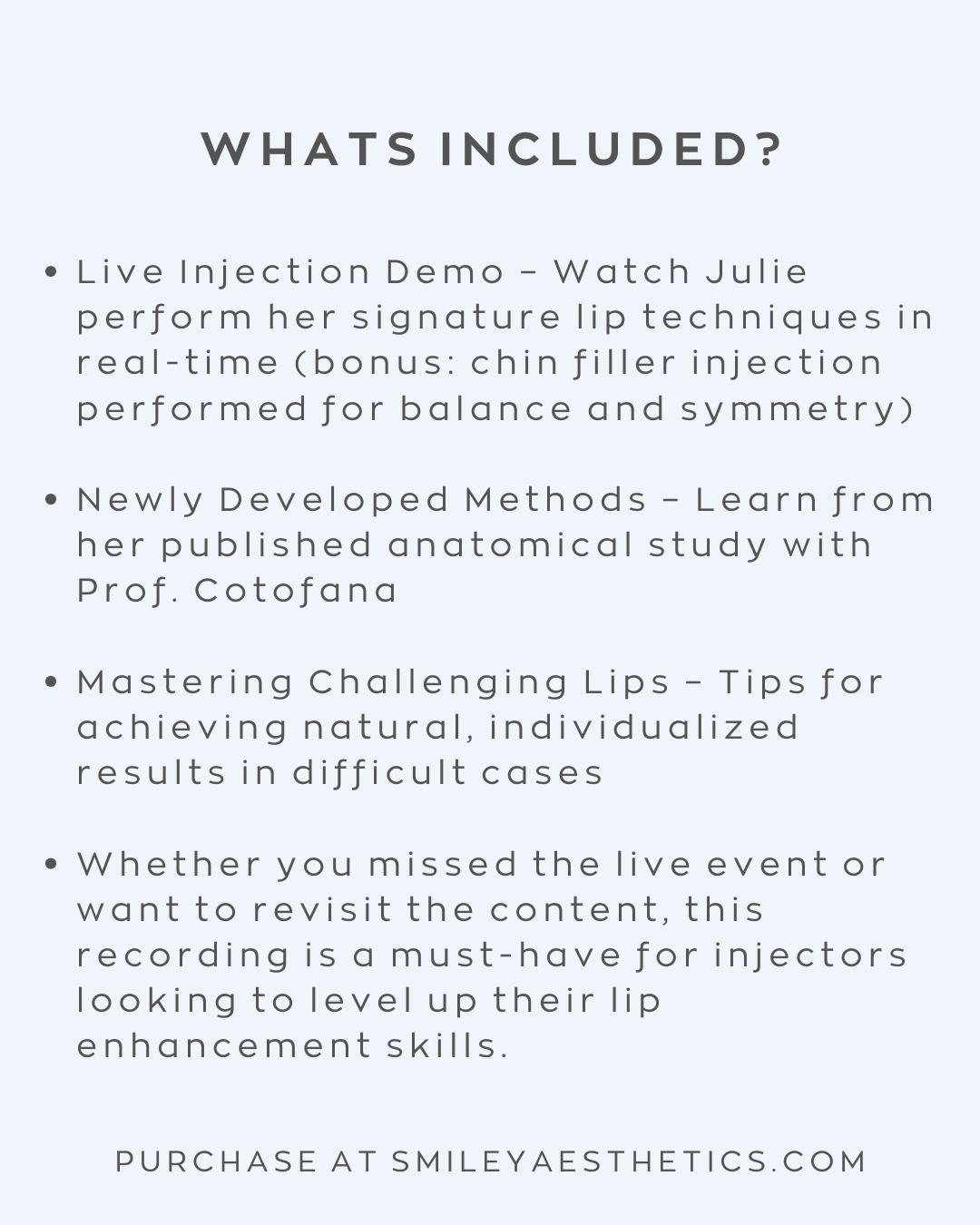 Whether you missed the live event or want to revisit the content, this recording is a must-have for injectors looking to level up their lip enhancement skills.